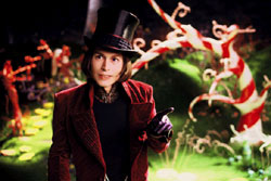 子供じみてて、大人げなくて、チョコレート工場は成功したものの引きこもっていている孤独でエキセントリックなウォンカ。「アマデウス」のモーツァルトみたいな笑い方(PHYISISさん談)も気になりました。ビジュアルもおかっぱにシルクハット、ステッキに、かかとの高いブーツ、目はきらきら輝く特殊な紫のコンタクトをいれたグラムなファッションなジョニー・デップの演技がハマリ役!