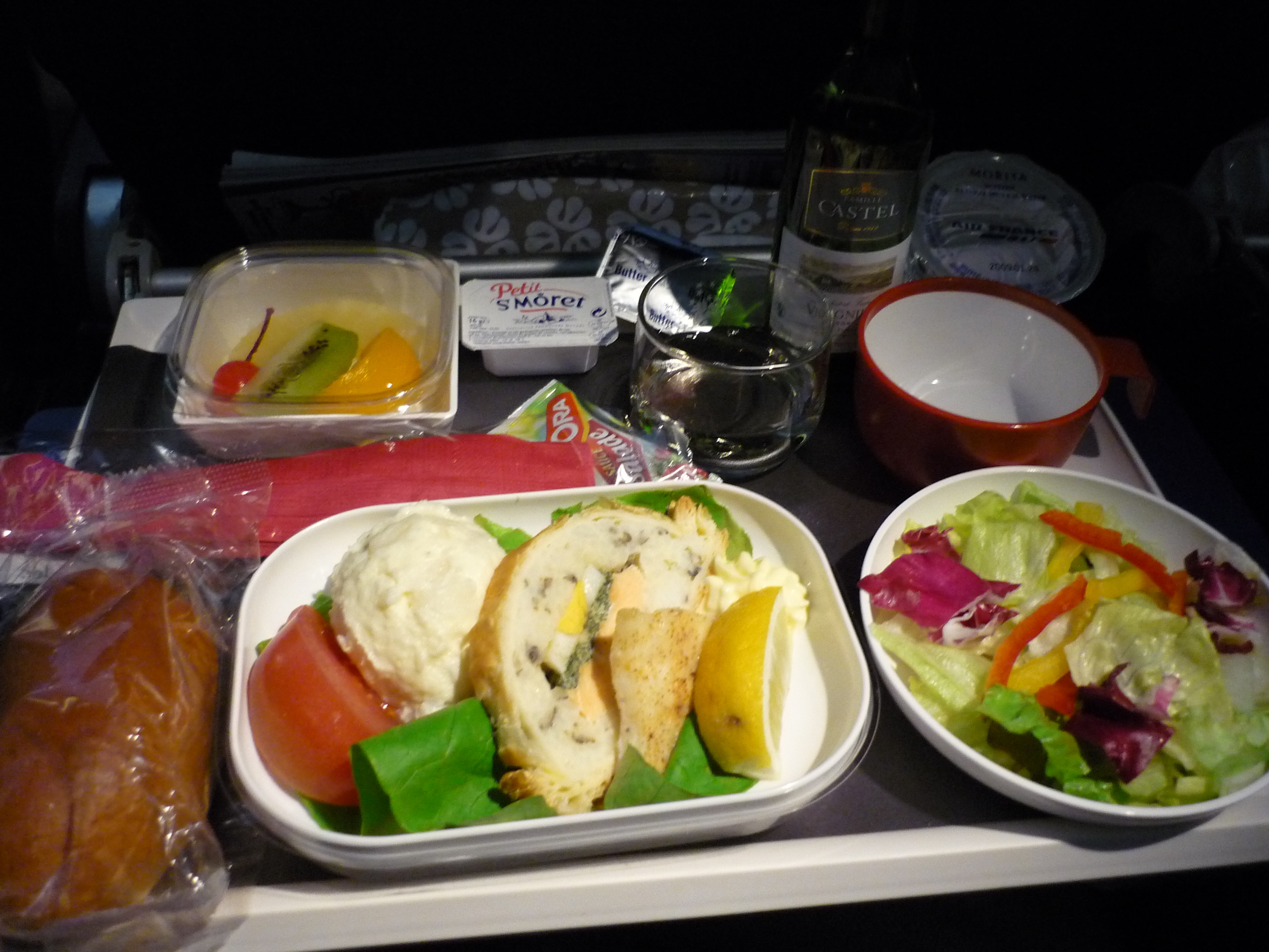 機内食もワインと一緒に食べることが前提になっている味付けというか、休日にピストロで食べる食事ようで楽しめた。かならす、チーズ(白カビタイプのもの)が出るのもとても嬉しいです。サラダにもフェタチーズなどが入っていて食材も素材もおいしい。