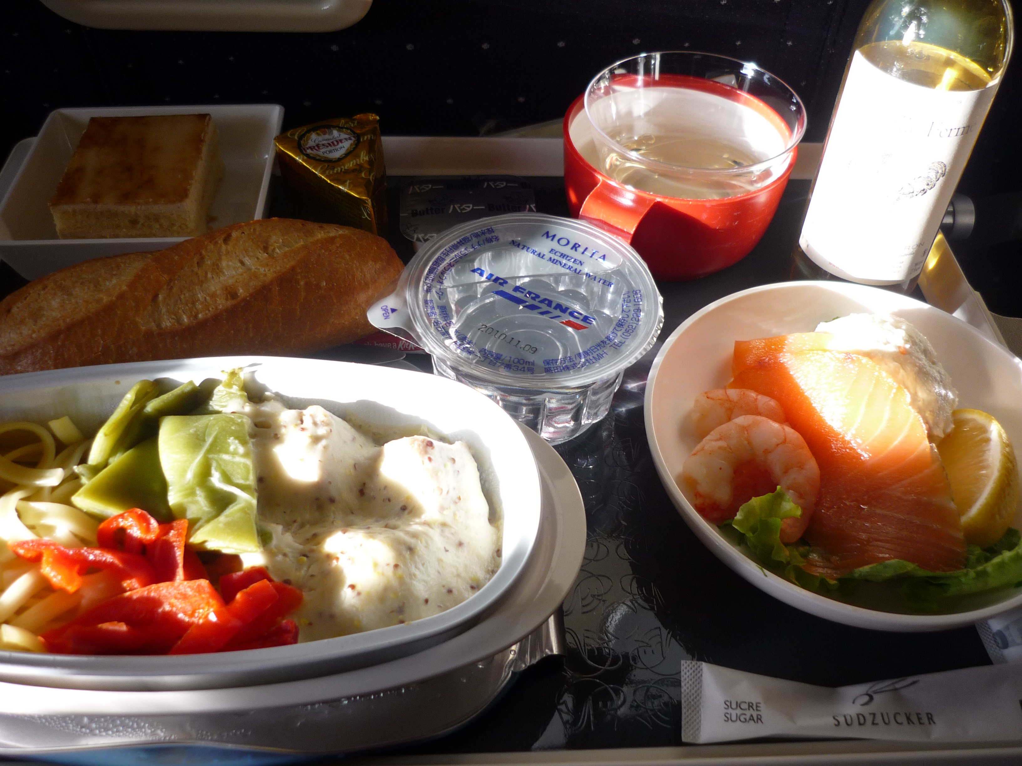 エール・フランスの機内食やシーフード機内食の記事を見てくださる方も多いように思うので、写真を追加。フリカッセ、ロシア風サラダとライト・ミール写真です。