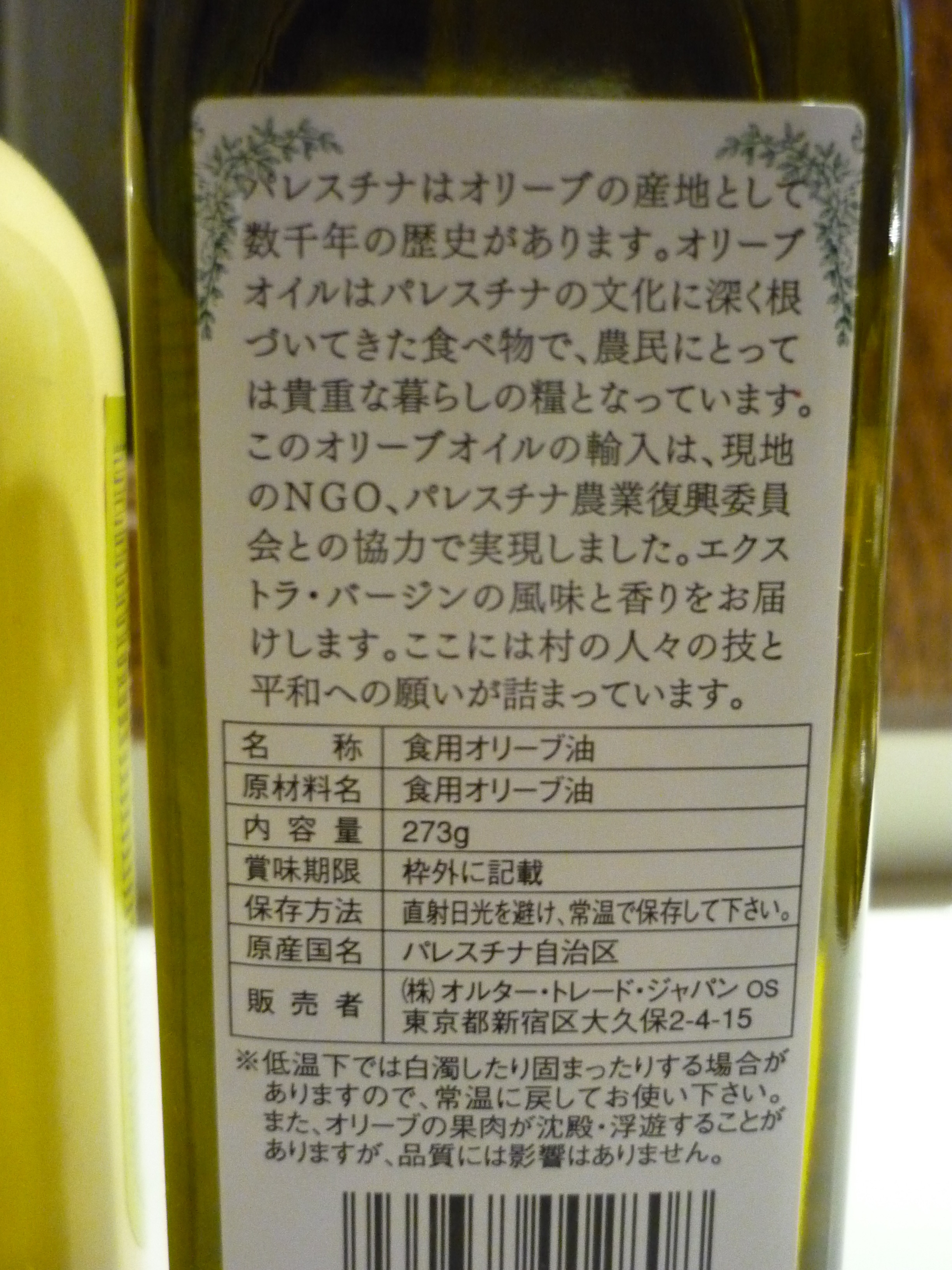 パルシステムで、「パレスチナのオリーブ・オイル」を購入。