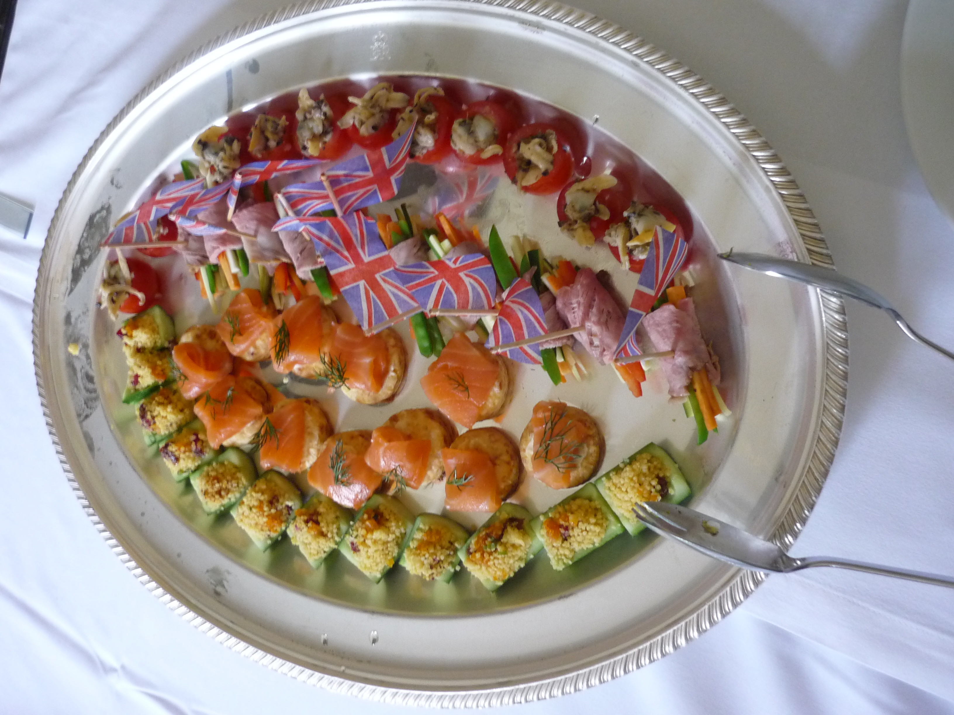 一口サイズのアペタイザー。他にミートパイやサンドイッチ、シュリンプを使ったお料理など。