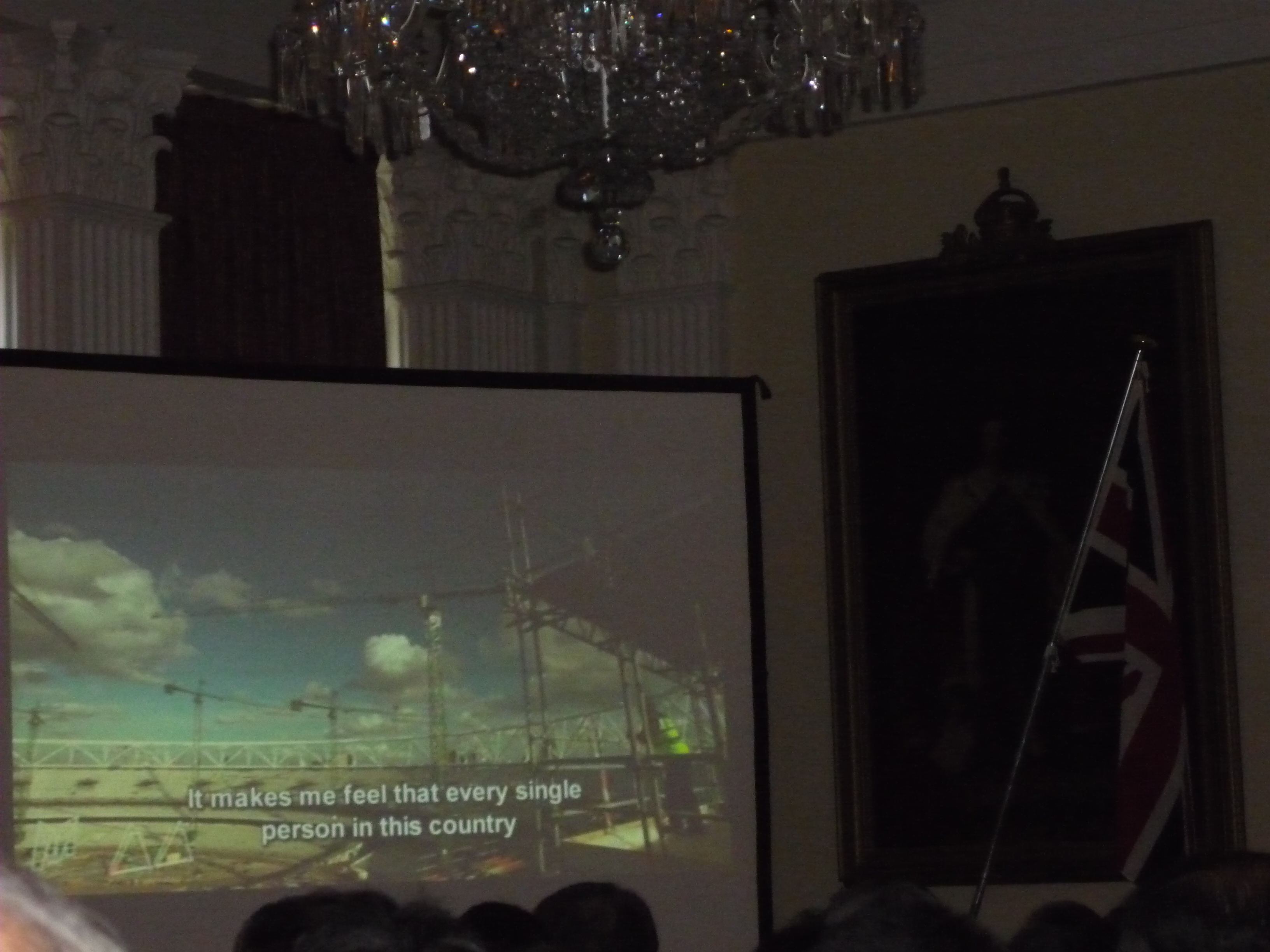 ディヴィッド・ウォレン大使から日本語と英語で挨拶があり、その後、ウィリアム・ヘイグ外務大臣と、ロンドンオリンピック・パラリンピック組織委員会会長のセバスチアン・コー卿からのビデオ・メッセイジがありました。