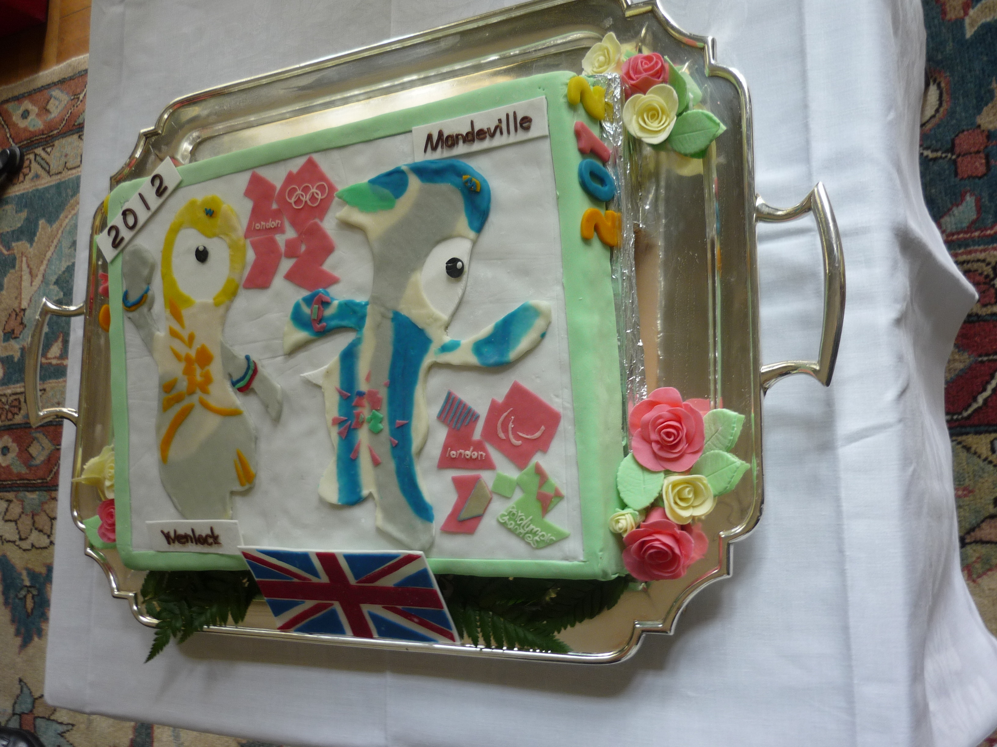 ロンドン五輪のキャラクターをかたどったケーキ。
