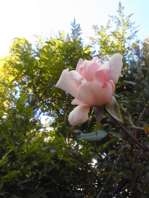 ニュー・ドーンは初めて植えたばらで、その後、フェンスに這わせるために追加し、2株植えています。新しい夜明け、を意味するばらですが、実際、クラシックローズとモダンローズの中間種でもあるようです。香りもよく、やわらかい色で開きかけたときがもっとも美しい、と思うばら。葉も綺麗です。2株ともバラクラ(蓼科)で買いました。2つつぼみがつき、晴れていた数日前の朝に撮影。