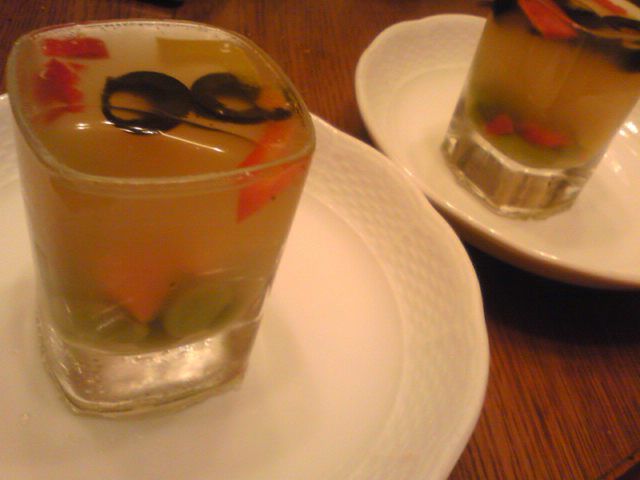 えだまめ、パプリカ、オリーブでゼリー寄せを作ってみました。
