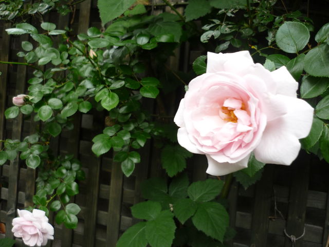 現在、ばらはニュー・ドーンが沢山咲いています。新しい夜明けを意味するこのばらは本当に早朝の咲き始めが美しいバラです。房になって咲くので切り花にはあまり向きませんが、一輪飾るのも良いです。
