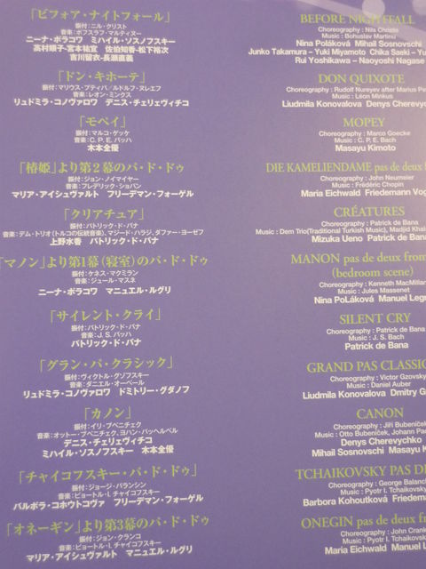 「カノン」は以前も書いたように、初演時の振付家であるイリ・ブベニチェクとアレクサンドル・リアブコそしてマチュー・ガニオの3名での舞台をみていたし、「ドレスデンとブベニチェク兄弟」のときの舞台もみているので、その印象があまりにも強く・・・でもまた違って動的な「カノン」だったと思います。この演目はダンサーの持ち味や個性が出る分、動きのつなぎ目や音楽性といった芸術的に重要な部分がよく顕れる作品だと思うので、これからもいろんなダンサーで見てみたいとも感じました。