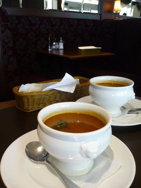 ウィーン風スープ。グーラッシュ。ライオンカップに入ってきて、好きなスープを選べます。