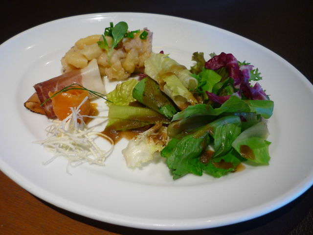 前菜のサラダ。このほかにカイザーロールっぽいパンがつきます。パンはもう1つくらいあったほうがいいかも。