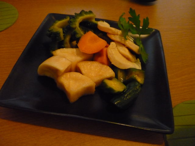 夜にあるおすすめのメニュー、野菜とモッツァレラチーズの味噌づけもおいしいです。