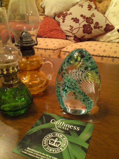 らせんを描く気泡と緑色の透明感が美しかったので、英国KEW ROYAL BOTTANIC GARDENSのオブジェを。パソコンと一緒も持ち帰るのは重かった!ですが、やはり持ち帰ってよかったです。