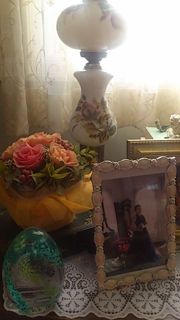 後ろのものがアンティークです、すべて手描きで、しかも電球もつきます!(確かめてくれて、その電球も頂きました)ローズ型のボールペンもご縁ですから、といただき・・・お気持ちがうれしいですよね。