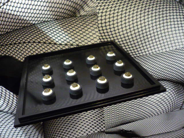 作品展にあわせて用意されたオードヴル。10月20日からGUCCI旗艦店(新宿)にて森山大道 Mesh 展が始まります(ました)が、展示会期が始まる前のプレヴューに呼んでいただきました、森山氏にもお会いし、写真は手刷りのシルクスクリーンで新作が多く、見応えがあります、初見のインプレッションでいくつか気になる作品があったので直接お話しして聞かせて頂きました。私がなんとなくメキシコ?っぽい・・・?と思った作品がブエノスアイレスだったり、首都高(コーネリアスのPOINT的なイメージで)と思ったものが東名だったり、リヴァプール?と思ったものが静岡だったりと、モノクロームからうける光と影の印象は、ルドンの作品をみたときのような効果を想起したり、シンディ・シャーマンの作品を思い起こすものもあり、ご招待いただき感謝です。