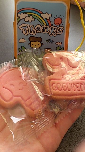 Eikoさんから頂いた、GO ガイドドック!(盲導犬)支援および被災犬を支援するためのクッキー。一筆箋も頂きました。我々を人間をいぬ、ねこ、馬、ウサギなど生活から気持ちの上でも支えて信頼してくれる存在・・・一度一緒に暮らしたら、自分のこども以上に大切にしてほしいです・・・使役のために使い捨てになることのないように・・・
