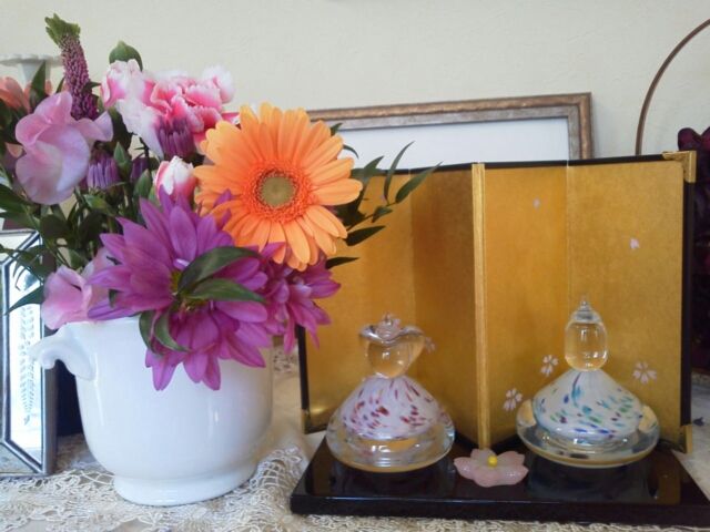 ガラスの雛は神戸のトアデコで見つけた作家さんのものです。