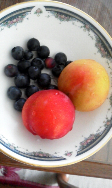 写真は今年自宅でとれたブルーベリー、すももはパルシステムの大石早生。