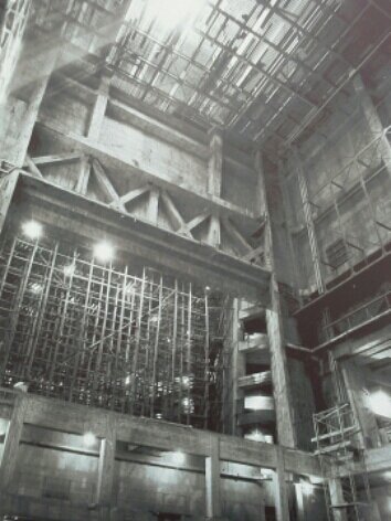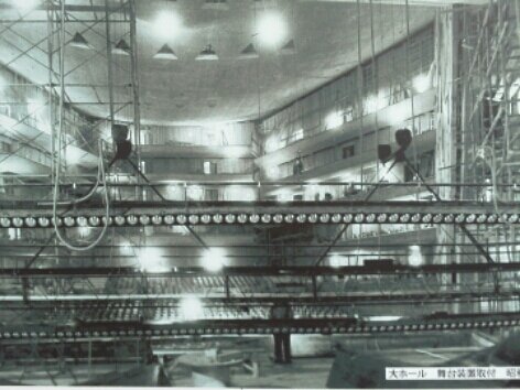 写真をみていると大規模音楽ホール、それもオペラを視野にいれた大ホール落成や反響板の設置の写真は、なかなか感無量なものがます。
