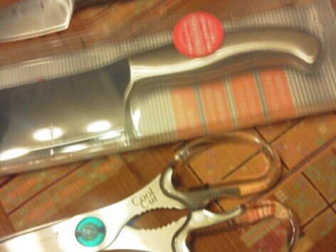 ヘンケルスのアウトレットでキッチンはさみを買おうとしたら、ペティナイフ、三徳包丁のセットが得だったのでそちらにしたんですよね。とってもよく切れます!ペティナイフはそれほどでもないかな・・・