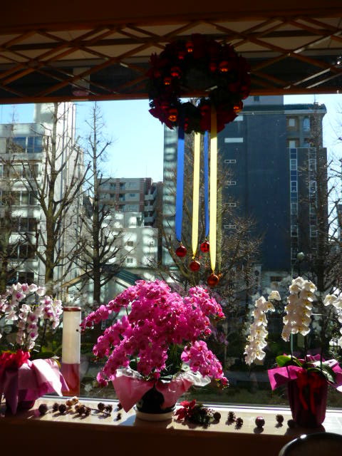 ↡20日もありましたっけ・・・? 本とアレンジメントも。ツリーの近く。