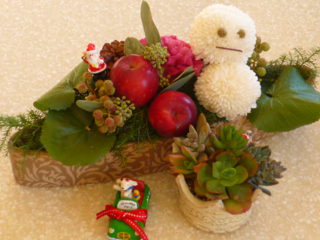 ひめりんごと多肉の組み合わせ+菊かな。蕗もありますね。23日公演はゲストでした。