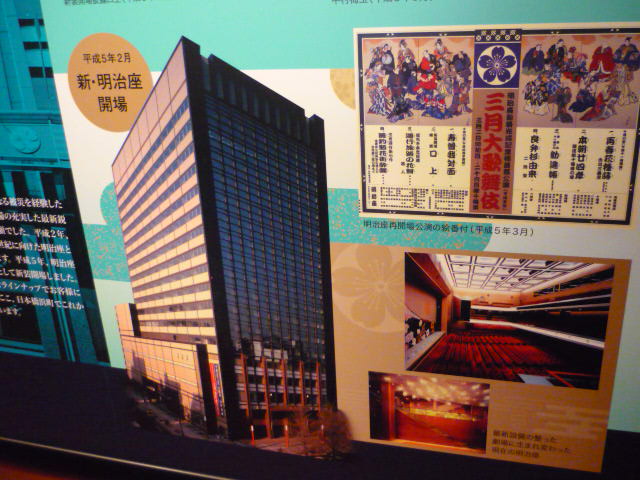 20日には出ていなかった門松と国旗が明治座前に。ホワイエには明治座の年譜もありました。(140年らしい)