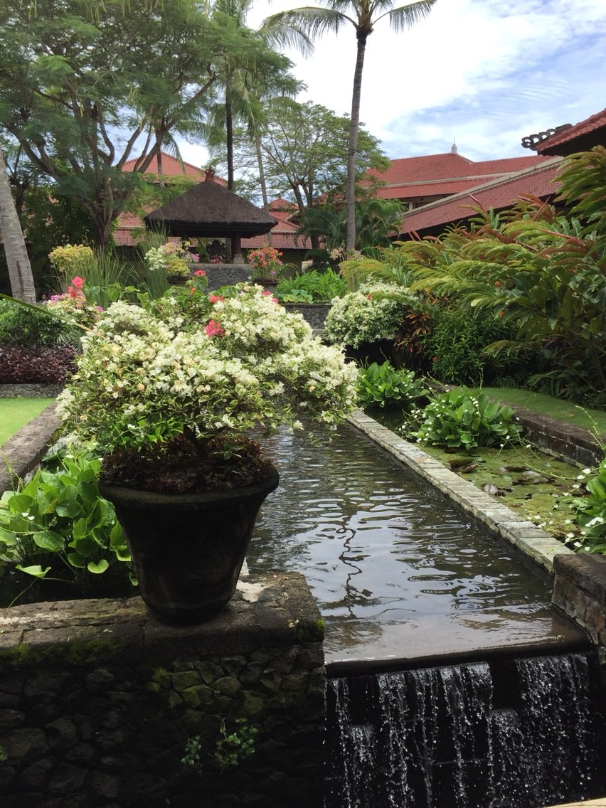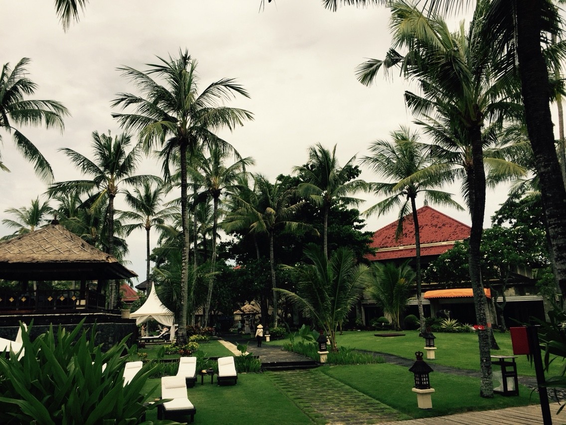 曇っているので13日到着後の2時頃のガーデンとインターコンチネンタル・バリの正面ロビー横の庭。