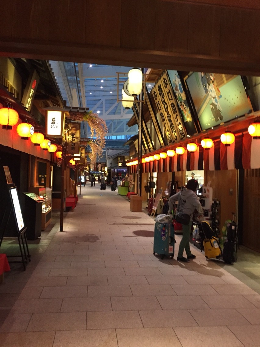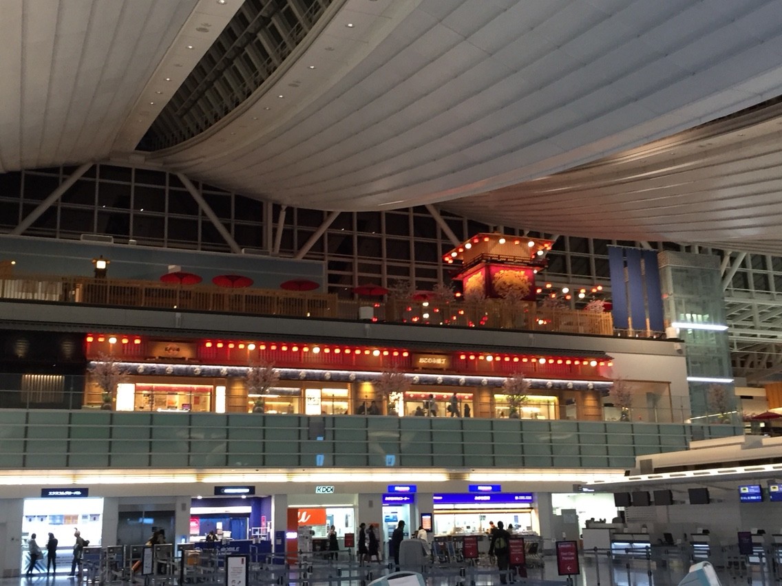 エミレーツ、ANA、シンガポール航空などがこの出発ロビーにあります。江戸小路はこんな風。一年中、桜のディスプレイなのかしら。でも雰囲気あるし、新しいターミナルいいんじゃないかな。