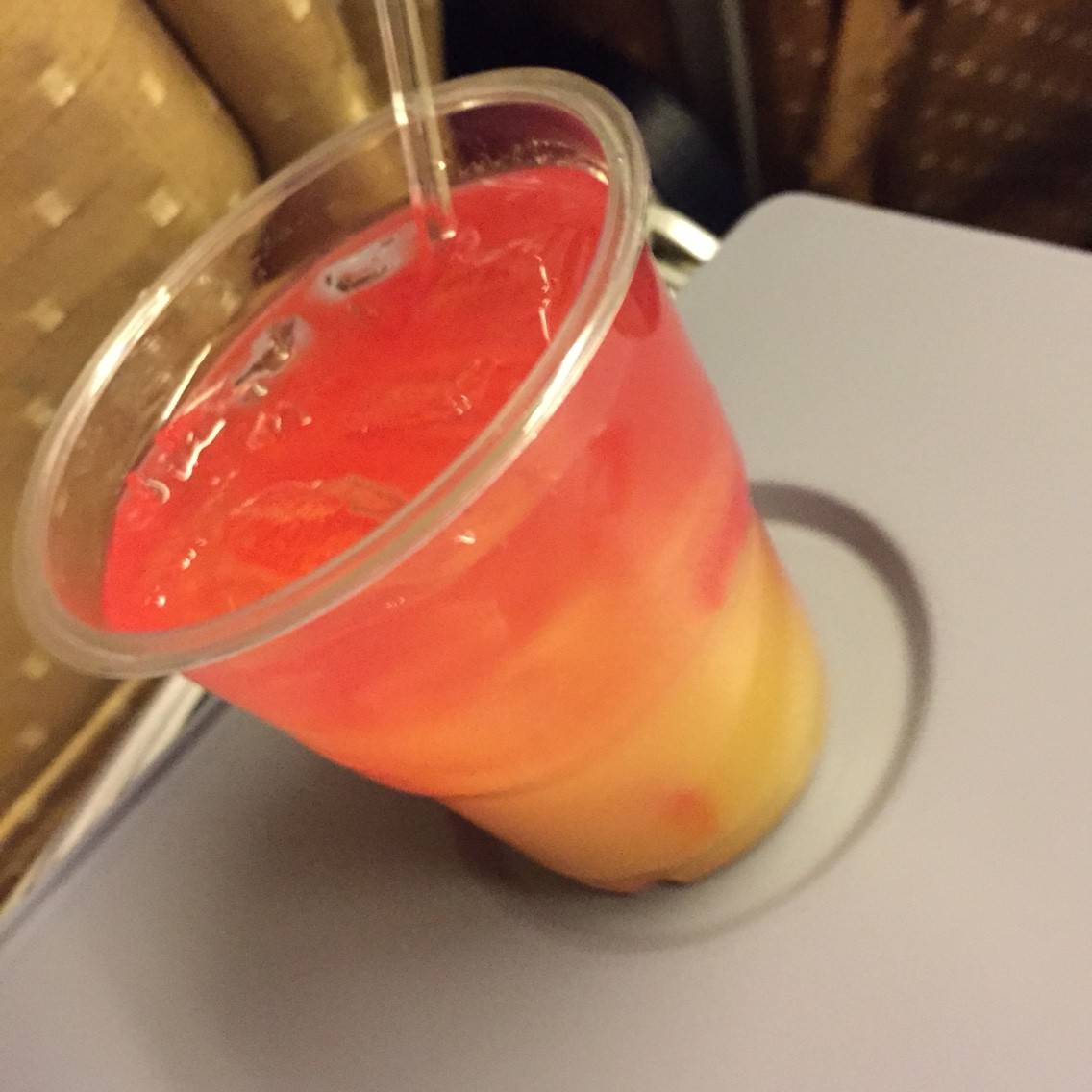 シンガポール・スリングが美味しいしそれがシンガポール航空のうりだと聞いていたので、最初の飲み物リクエストでオーダーしました。ちゃんとカクテルとして作ってくれていて、とっても美味しい!