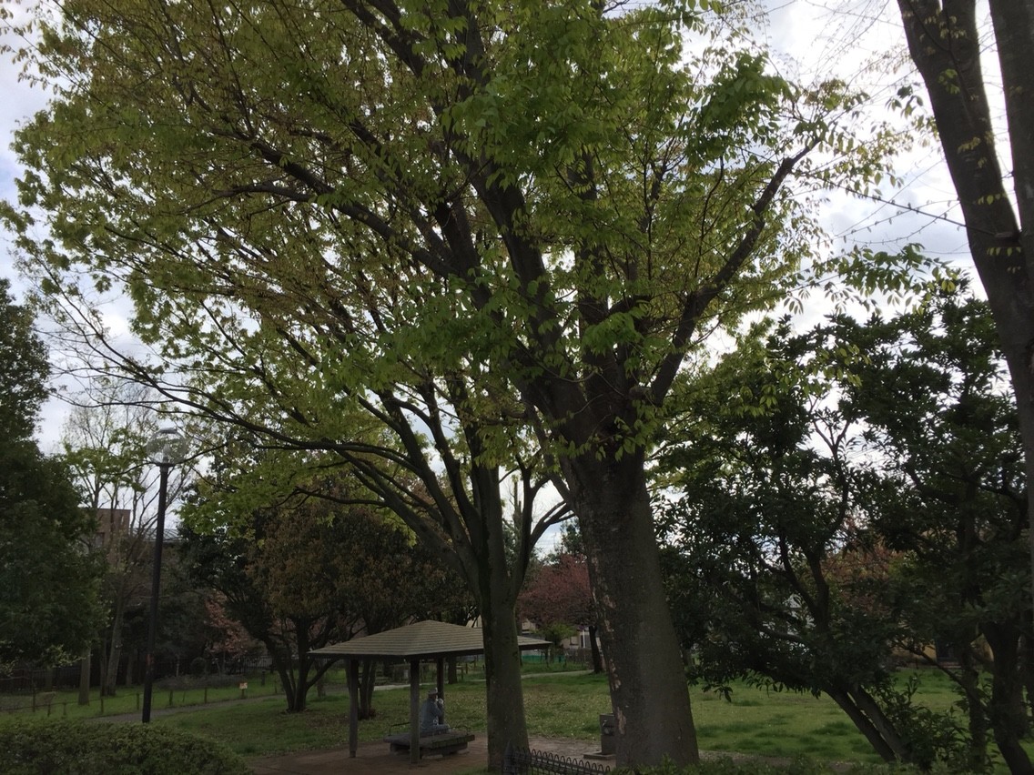 二つ先の駅にある公演、だいぶ新緑が。ドウダンツツジでしょうか。