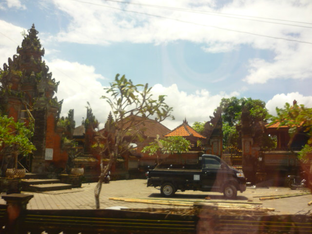 アグン山が見える?とても綺麗な車窓です。バリは高速道路ができまして(通行料10000Rp=約100円)中心地の道はどこも整備されてます。
