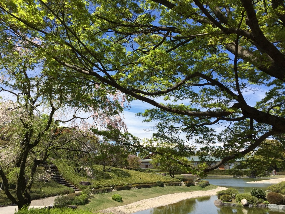 写真は、雨のあとの快晴。風がすこし強かったのですが、周囲の住宅地から木々で囲まれた園内はあまり風もつよくなく、雲のない天気でした。