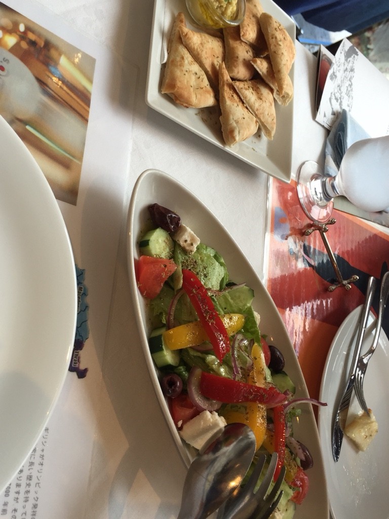 ギリシア・サラダ。フェタチーズ、パプリカ、キュウリも新選で美味しいです。