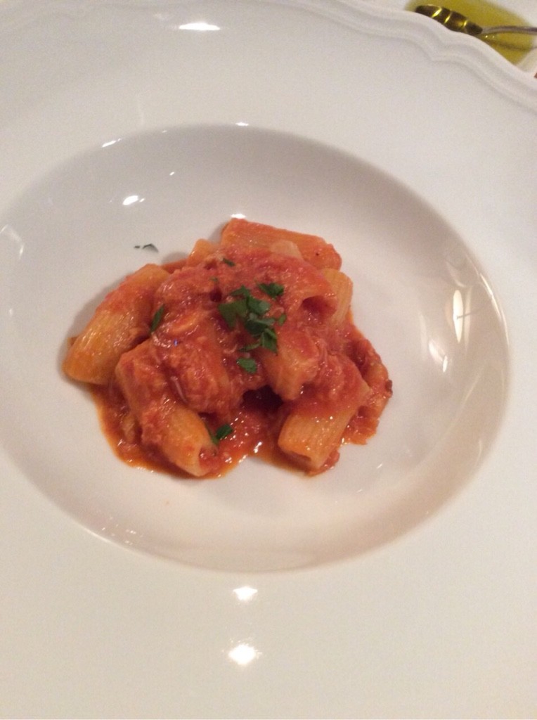 リガトーニ、ワタリガニのトマトソース。