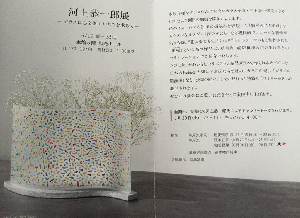 ガラス作品を作成されている河上恭一郎氏の作品展へ行ってまいりました。