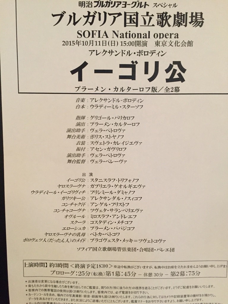 ブルガリア国立歌劇場による引っ越し来日公演<イーゴリ公>Prince Igor 全2幕に行って来ました。