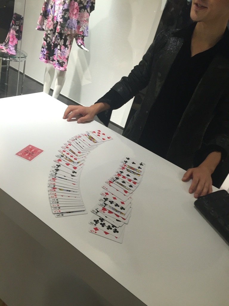 バーカウンターの手前でマジックショーが行われていたので、拝見しました。これ凄かったです!