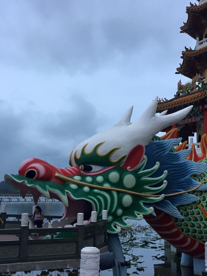 夕方に到着した蓮池譚。40元払うとポストカードがもらえますが(これは別に入場料ではないです)龍のほうから入って虎から出るのだったか...(うろおぼえすみません。陶器でできた道教(?)の物語が描いてあります。