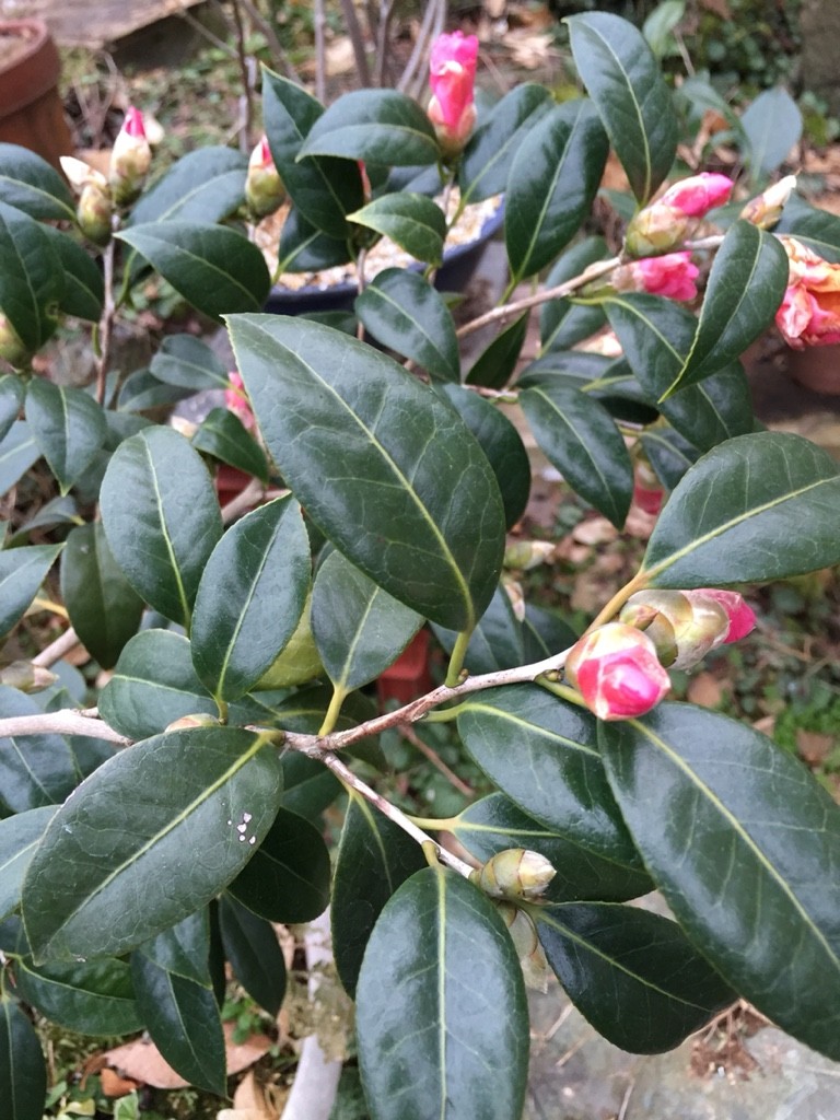 実家の椿と自宅のオリーブ。
