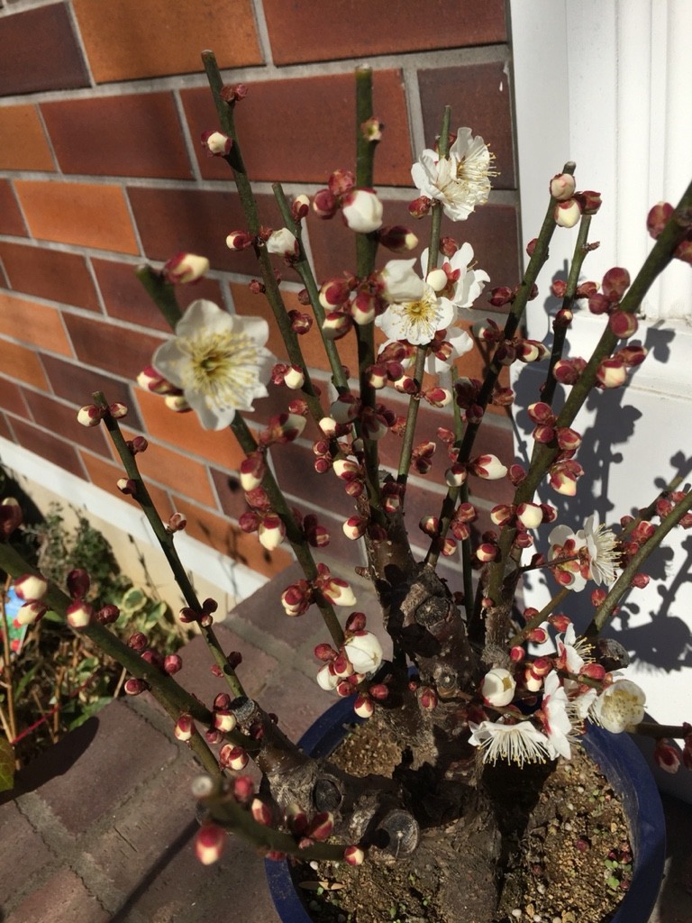 写真は鉢植えの梅。3日前の写真です。しかし昨日の春一番、20度超えた気温で一気に満開に...なんだかとても寂しい感じです。徐々に咲いてほしいものです。今日からまた寒いとなると猶更...