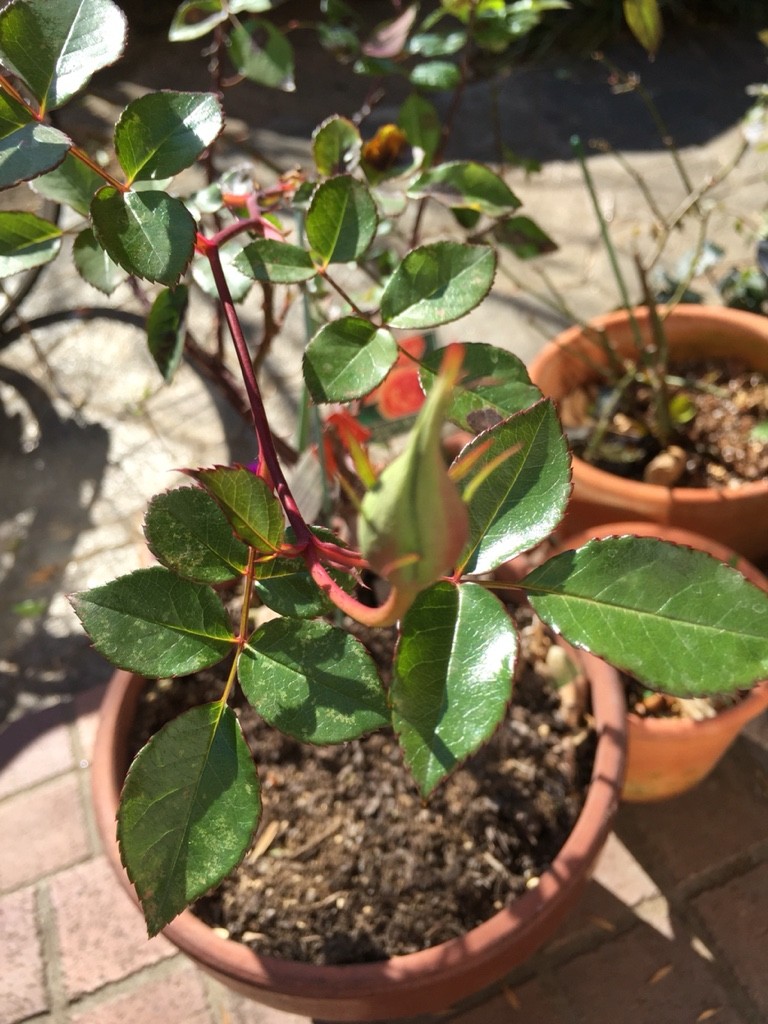 パット・オースチン(イングリッシュローズ)の蕾。そろそろ施肥しなくてはなりません。
