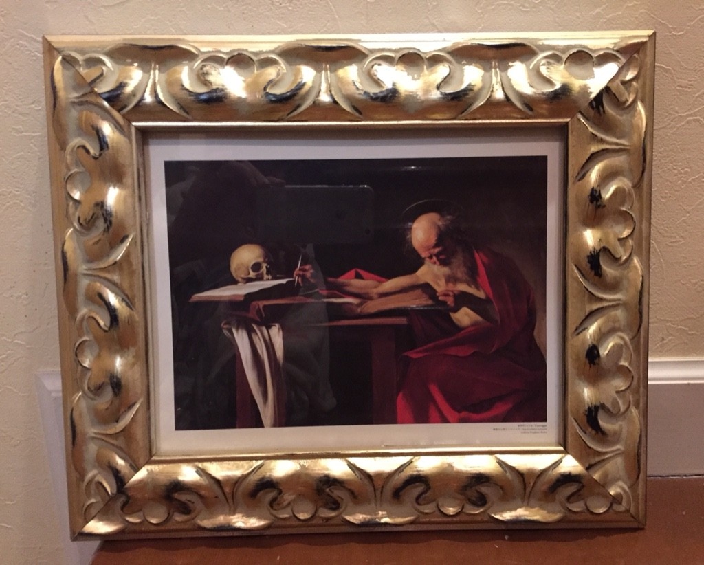 前回のカラヴァッジョ展で額絵を購入した<聖ヒエロニモス> ボルゲーゼ美術館より。この作品も凄かったのですよね...額絵を移動したので写真をとってみました。