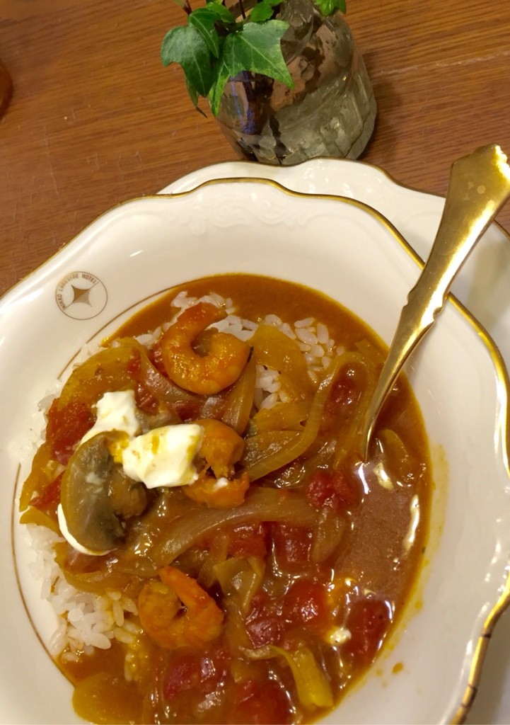 ベースになるルー(つかいます)パルシステムのスパイシーカレー。動物脂が入っている市販のものは避けています。しあげにトスカーナのはちみつ(みゆきさんにいだだいた。ギリシアヨーグルトにもつかう)をいれています