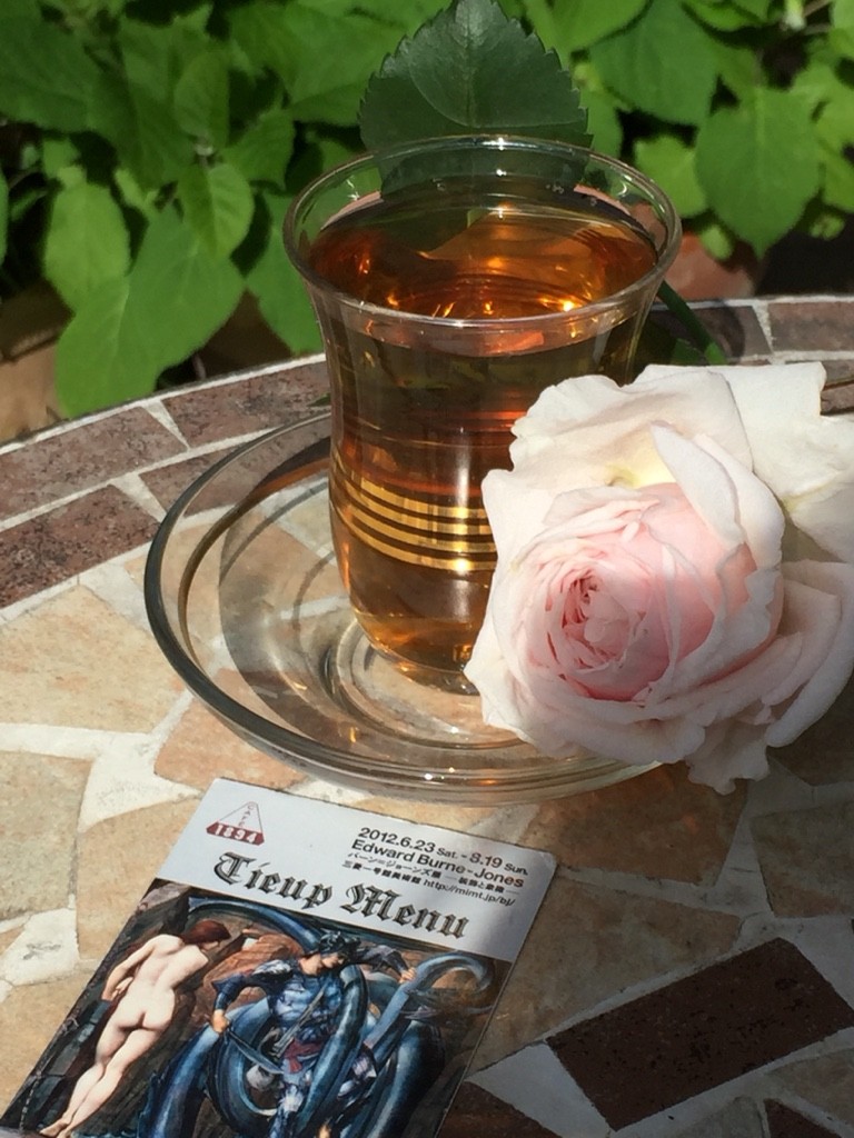 マリアージュ・フレールではチャイ型の花器も売ってます、朝のお茶(庭掃除とともに...)