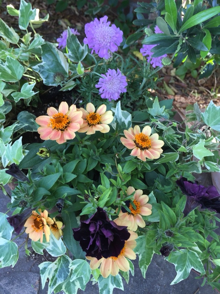 と近所でそろえたサフィニア。アイビーは庭のアーチから移植していろんなコンテナに...