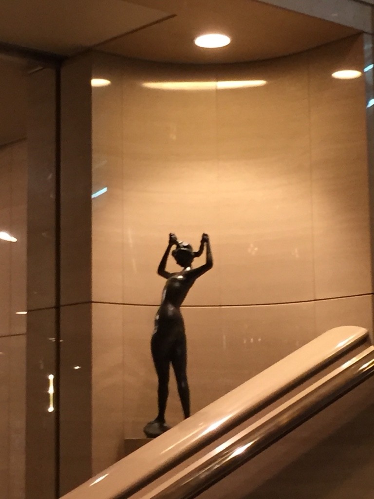 朝日ホールエントランス。 みうら氏的にいうところの「ヌー銅」:なぜかパブリックな場所にあるというヌードの銅像をいう。(思わず撮影)