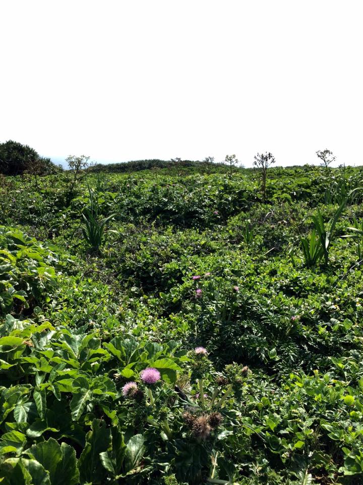 足元は琉球石灰岩でここも足元をみると植物の美しさ、逞しさを感じますし、野に咲く花と、波の音と風の音い合い何もない。岬の東西どちらもみることができます。