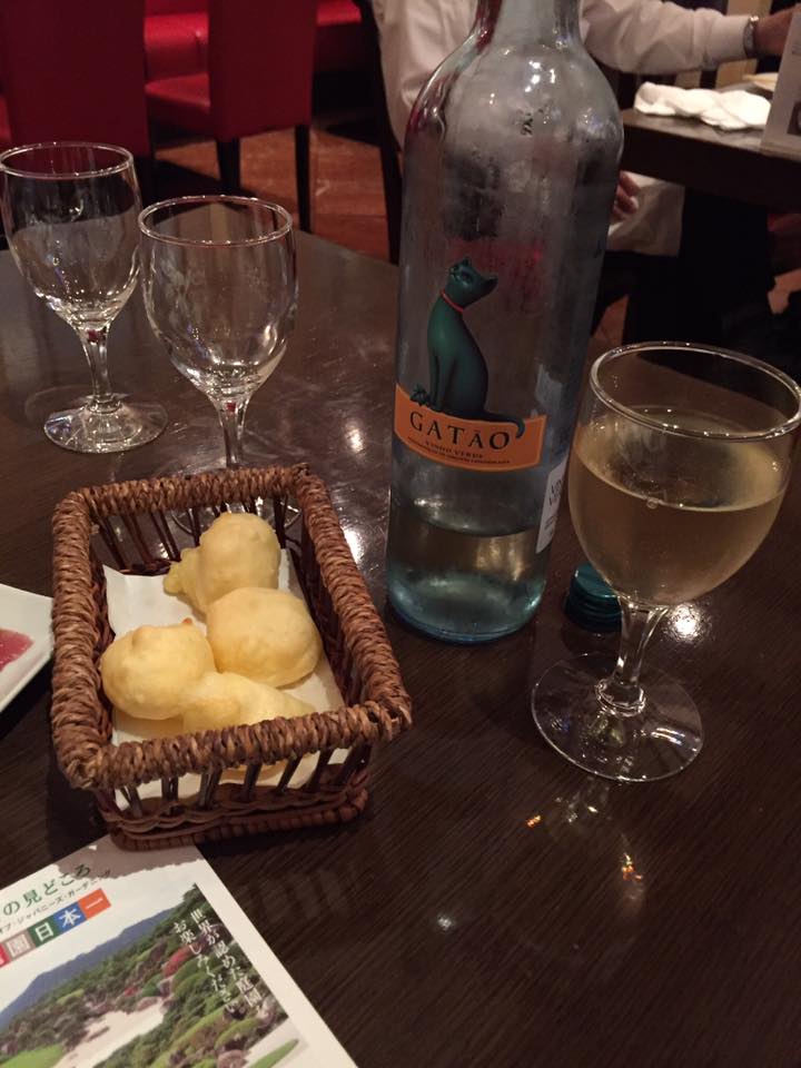 写真とらせてくださいと申し出て撮った、ヴィーニョ・ヴェルデ。フレッシュなぶどうを使ったよりフレッシュな飲み口のワインです、魚介やマリネとあうと思います。