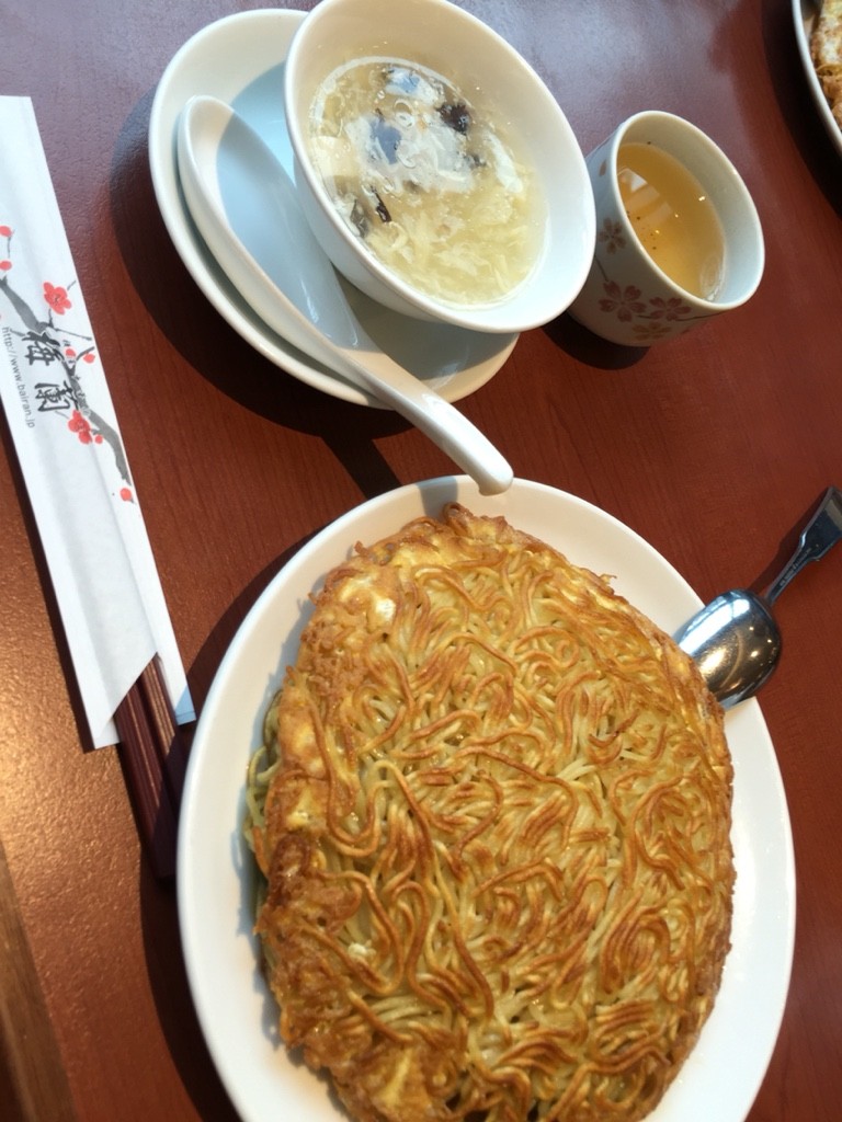 こちらの名物はかたやきそばとやわらかい焼きそばの中間の美味しさがひとつで味わえる梅蘭やきそばです。