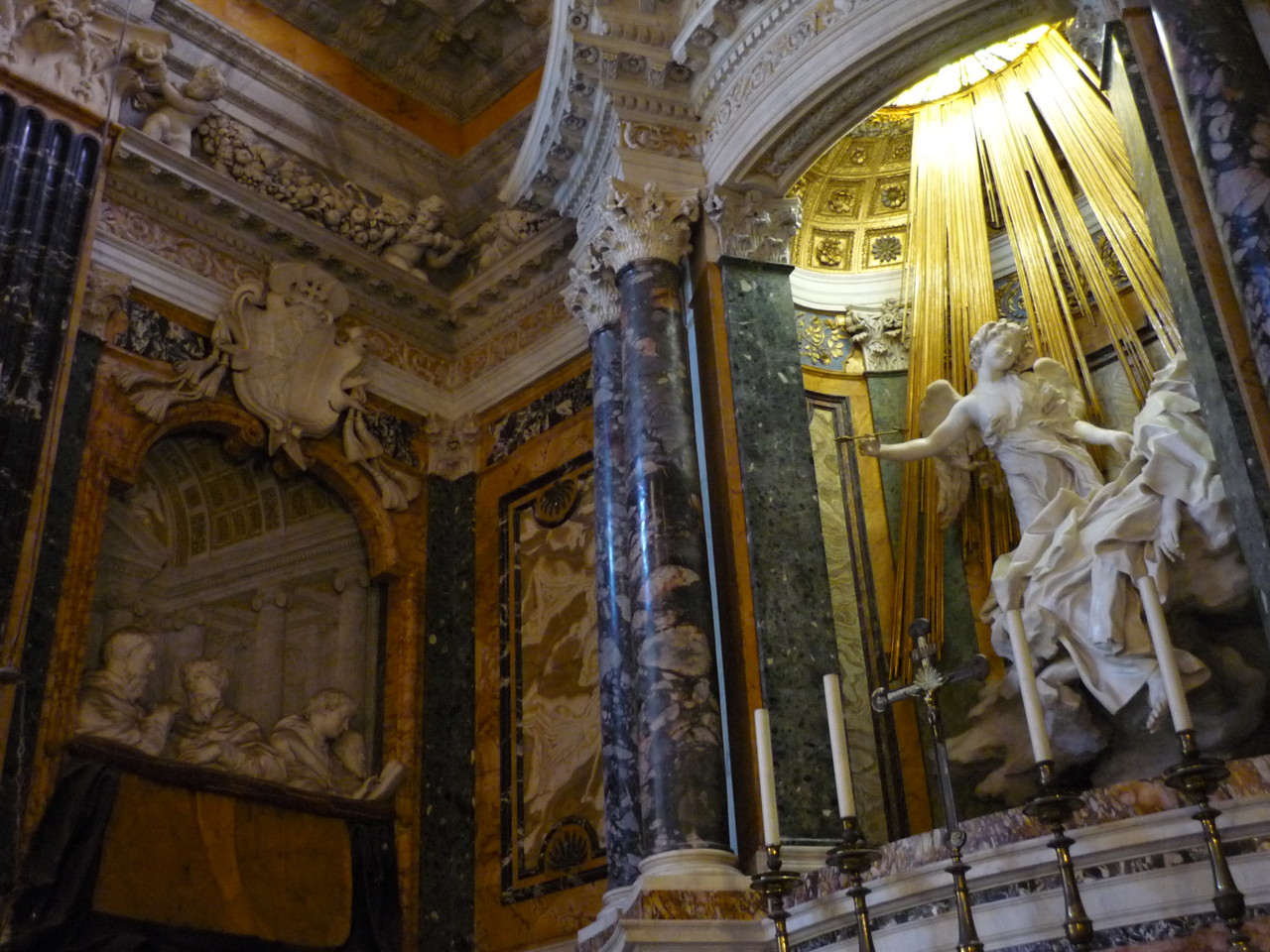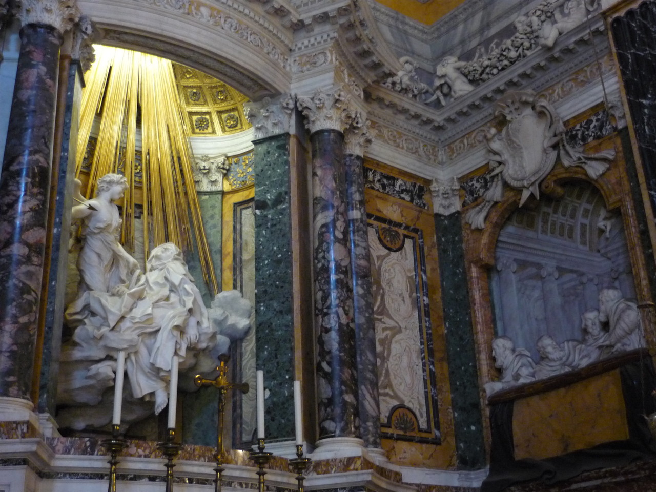 ローマと言えばバロック美術と古代ローマ(フォロ・ロマーノ他)と思いますが、<聖テレサの法悦>(Gian Lorenzo Bernini)を観に行った時の写真。ベルニーニによる1646年の彫刻。