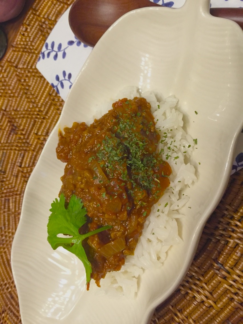 キーマカレー第2弾。マンゴーカット冷凍をパルシステムでヨーグルト用に買ってますが、カレーにも少量。宮古島の黒糖、スパイスはクミン、ジンジャー、エルブドプロヴァンス、ターメリック、ナツメグ、ガラムマサラは確実に。